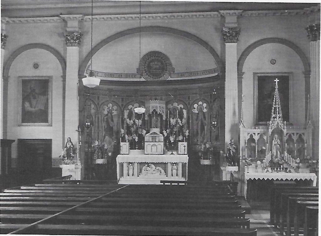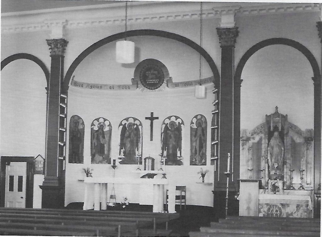 The present Church was attached to the barn, and seemed in fact to be a large extension of it. Part of the barn was eventually converted into a kitchen, but most of it was demolished by Fr T. McGarvey in the early 1 960’s. What remained was reconstructed by Fr T. Rattigan in 1970 to make provision for the present Parish Committee Room.