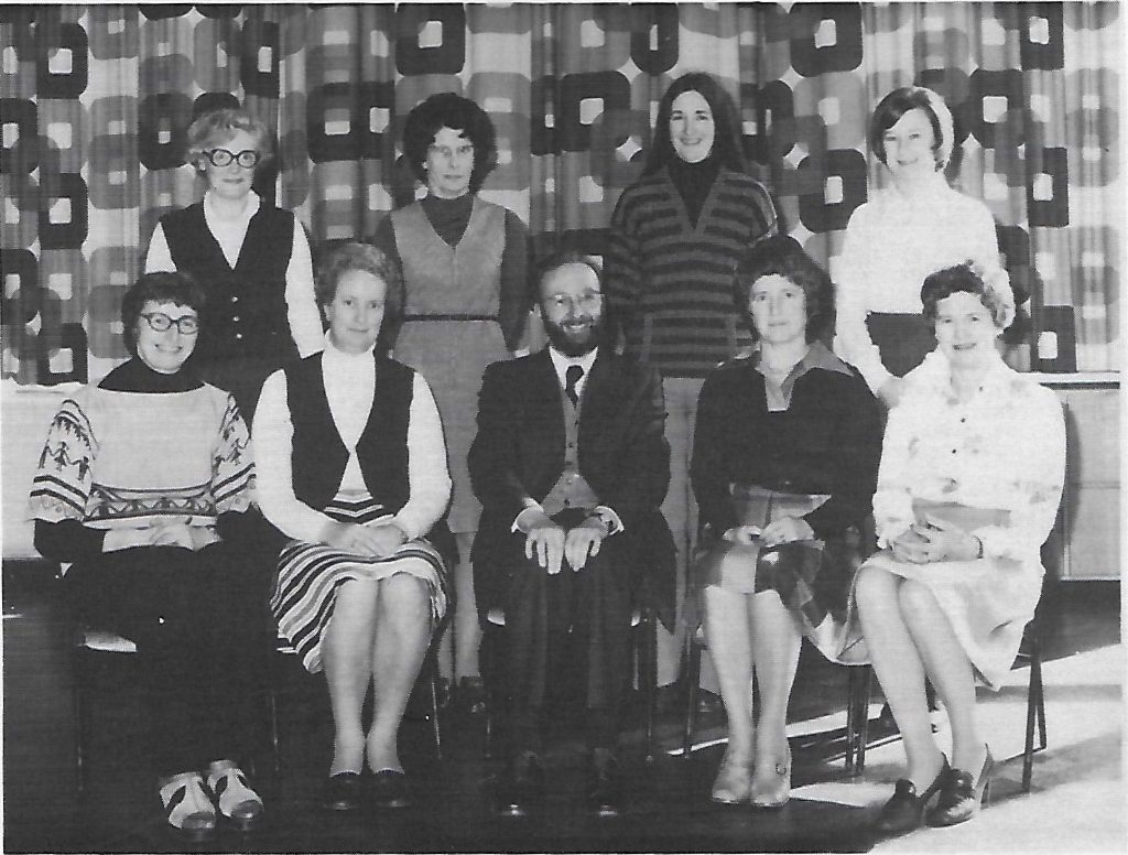 Seated – Mrs A. Hemingway, Mrs T. Robbins, Mr J. Carus, Mrs V. Roche, Mrs M. Carus